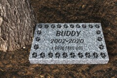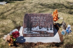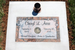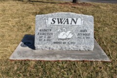 Flat monuments, or “grassers” as they are often called are markers installed level with the ground and viewed from above. Grassers are often chosen because of their affordability but can be mandated by some cemeteries. Generally, flat markers are limited in size but can include basic information such as names, dates, a special quote or even etched/ceramic portraits. These can be placed on a slight slant if requested and allowed.