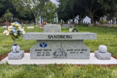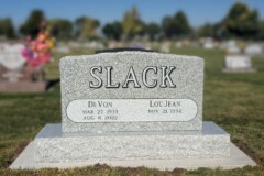 Slanted monuments tend to be lower in profile and slant at a 45 degree angle on the front side. These wedge shaped monuments are an option for those who prefer a smaller but durable profiled monument. Additionally, slanted monuments have easy-to-read designs, making inscriptions beautifully visible from a distance.