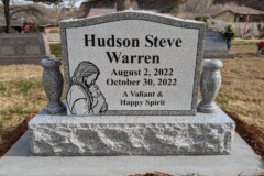 Upright monuments are the traditional type of grave marker found in most cemeteries. Uprights can be cut in a variety of shapes and sizes and can be engraved with virtually any image which properly eulogizes your loved one. Uprights can be wide and short, narrow and tall, rectangular with a curve at the top, or round shaped. We can create crosses, angels, and hearts. Nonetheless, the beauty of the upright is that one is not as limited in their creation as with other markers which can be limited by plot size.